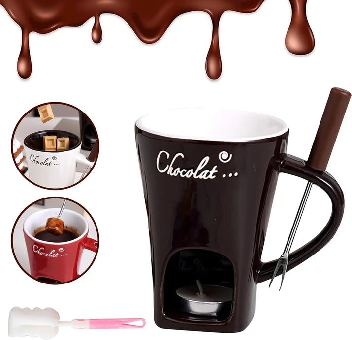Yüksek kaliteli tasarımıyla bu eğlenceli fincan, çikolata, peynir ve tereyağını kolayca eritir, lezzetli atıştırmalıklar sunar. Tek kişilik porsiyonlarla anında çikolata keyfi için idealdir.